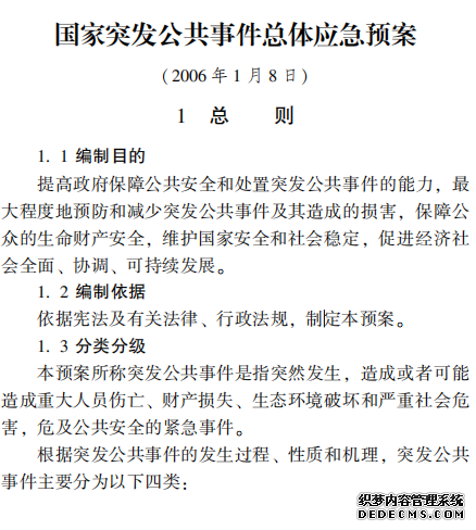 國家突發公共事件總體應急預案