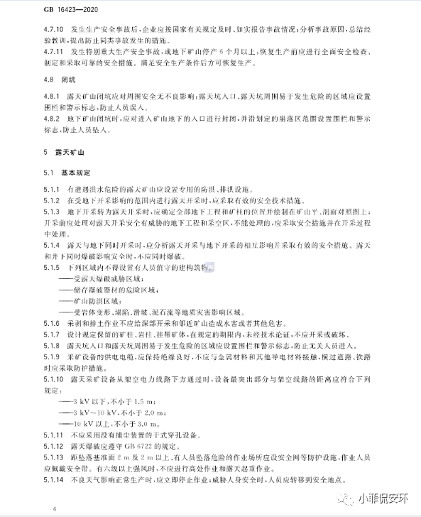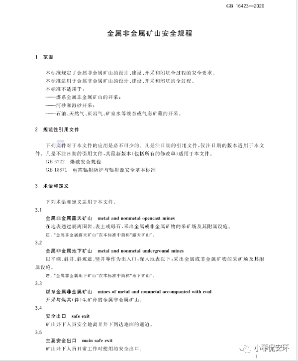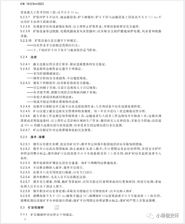 GB16423-2020《金屬非金屬礦山安全規程》,2021年9月1日起實施!