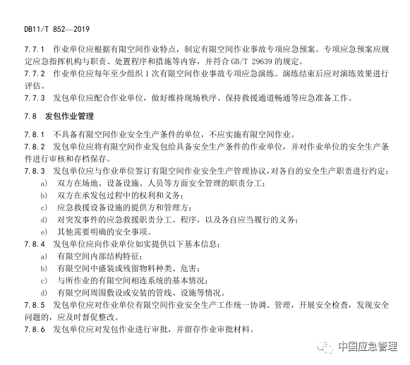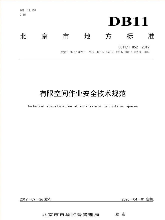 北京市 《有限空間作業安全技術規范》 DB11T852-2019