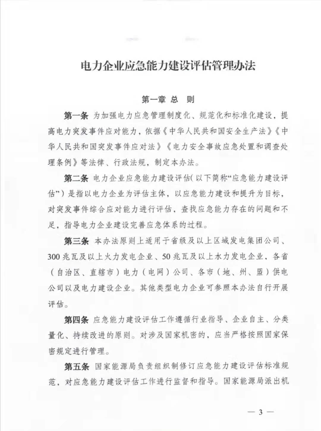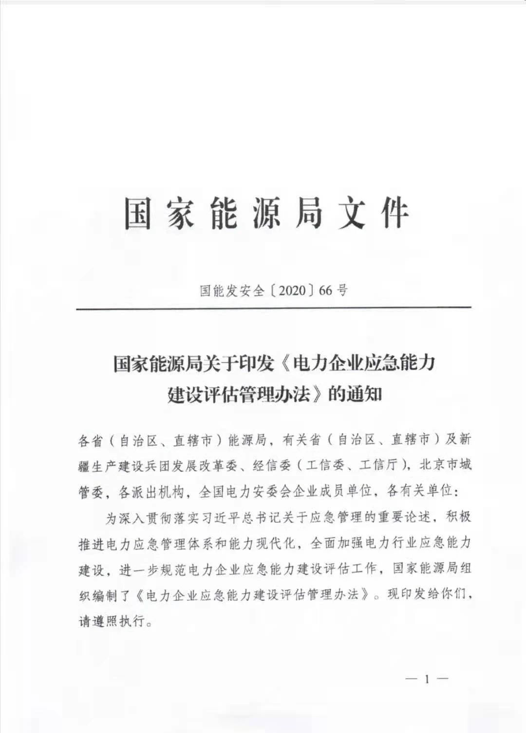國家能源局印發《電力企業應急能力建設評估管理辦法》