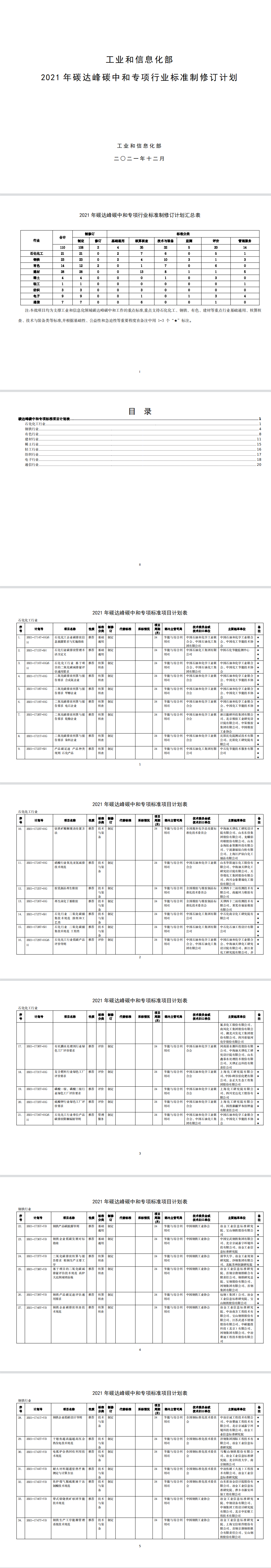 為發揮標準在推進工業領域碳達峰碳中和工作的引領和規范作用,我部編制完成了2021年碳達峰碳中和專項行業標準制修訂項目計劃?,F印發給你們,請認真組織落實。有關事項通知如下: