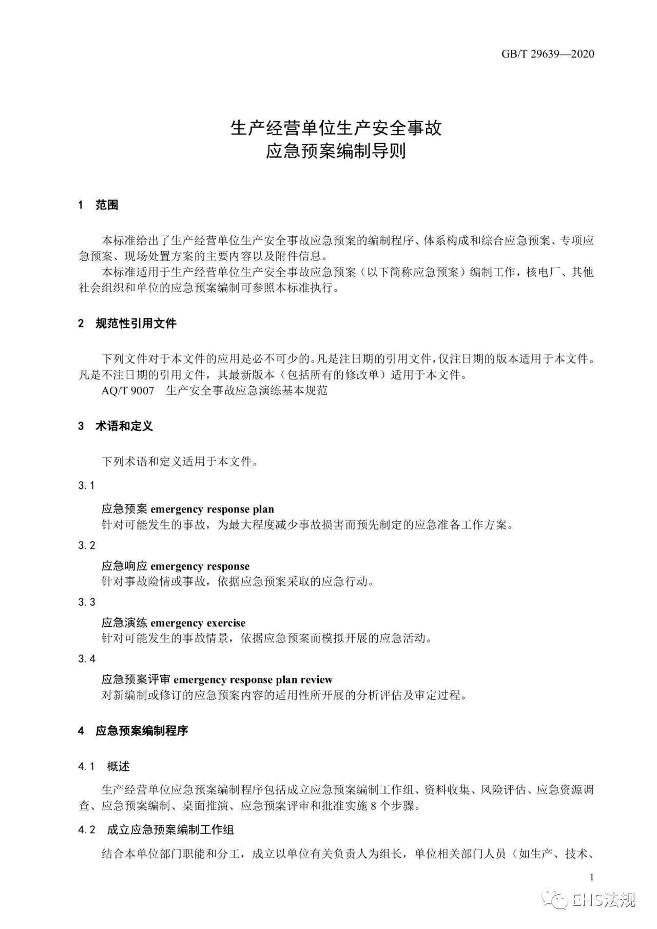 重磅!GBT29639-2020《生產經營單位生產安全事故應急預案編制導則》發(fā)布,21年4月實施!