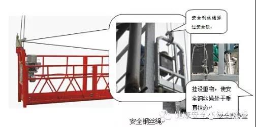 6、在吊籃平臺懸掛處增設一根與提升機構上使用的相同型號的安全鋼絲繩,安全繩應獨立懸掛。