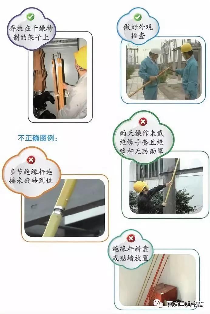 (5)操作結(jié)束后應(yīng)立即將絕緣操作桿收至保管袋中或存放于專(zhuān)用的木架上或特制的絕緣工器具柜內(nèi),且不得貼墻放置。