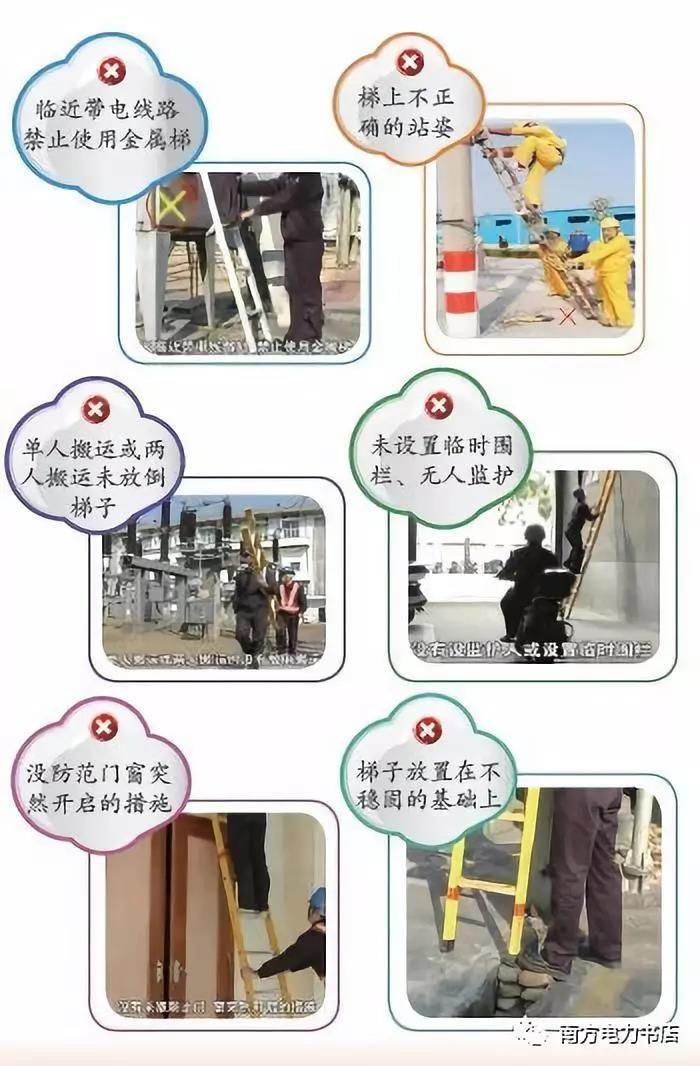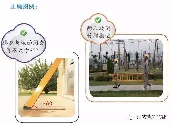(6)在部分停電或不停電的作業(yè)環(huán)境下,應(yīng)使用絕緣梯。在帶電設(shè)備區(qū)域中,距離運(yùn)行設(shè)備較近時(shí),嚴(yán)禁使用金屬梯。在戶(hù)外變電站和高壓室內(nèi)搬動(dòng)梯子、管子等長(zhǎng)物,應(yīng)兩人放倒搬運(yùn),并與帶電部分保持足夠的安全距離,以免人身觸電氣設(shè)備發(fā)生事故。