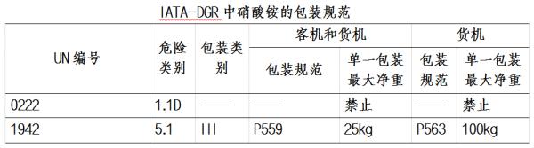 UN編號(hào)1942的硝酸銨在空運(yùn)時(shí),對照IATA-DGR技術(shù)規(guī)定,可選擇客貨機(jī)和純貨機(jī)兩種方式。當(dāng)用客貨機(jī)運(yùn)輸時(shí),不允許單一包