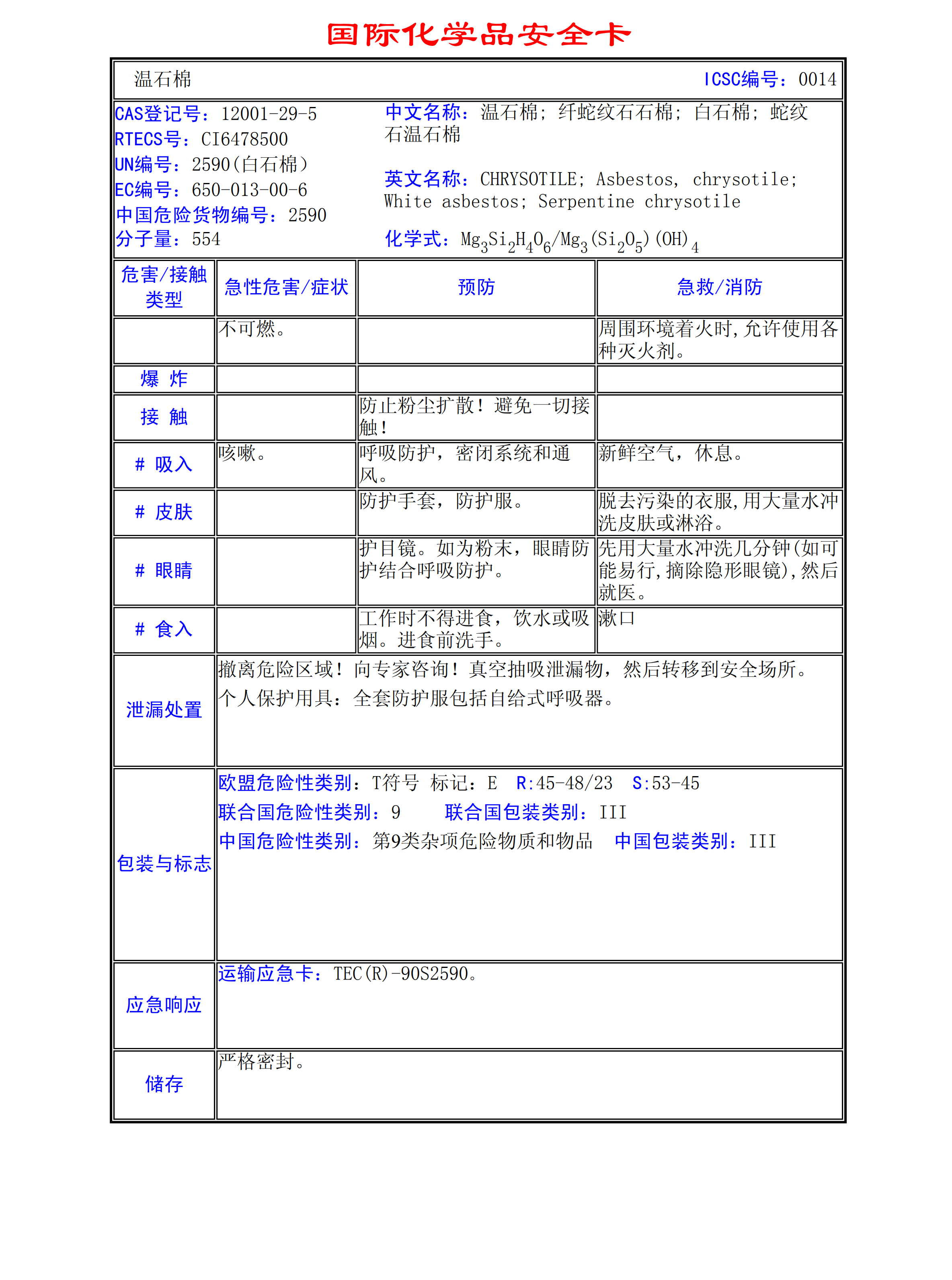 溫石棉MSDS