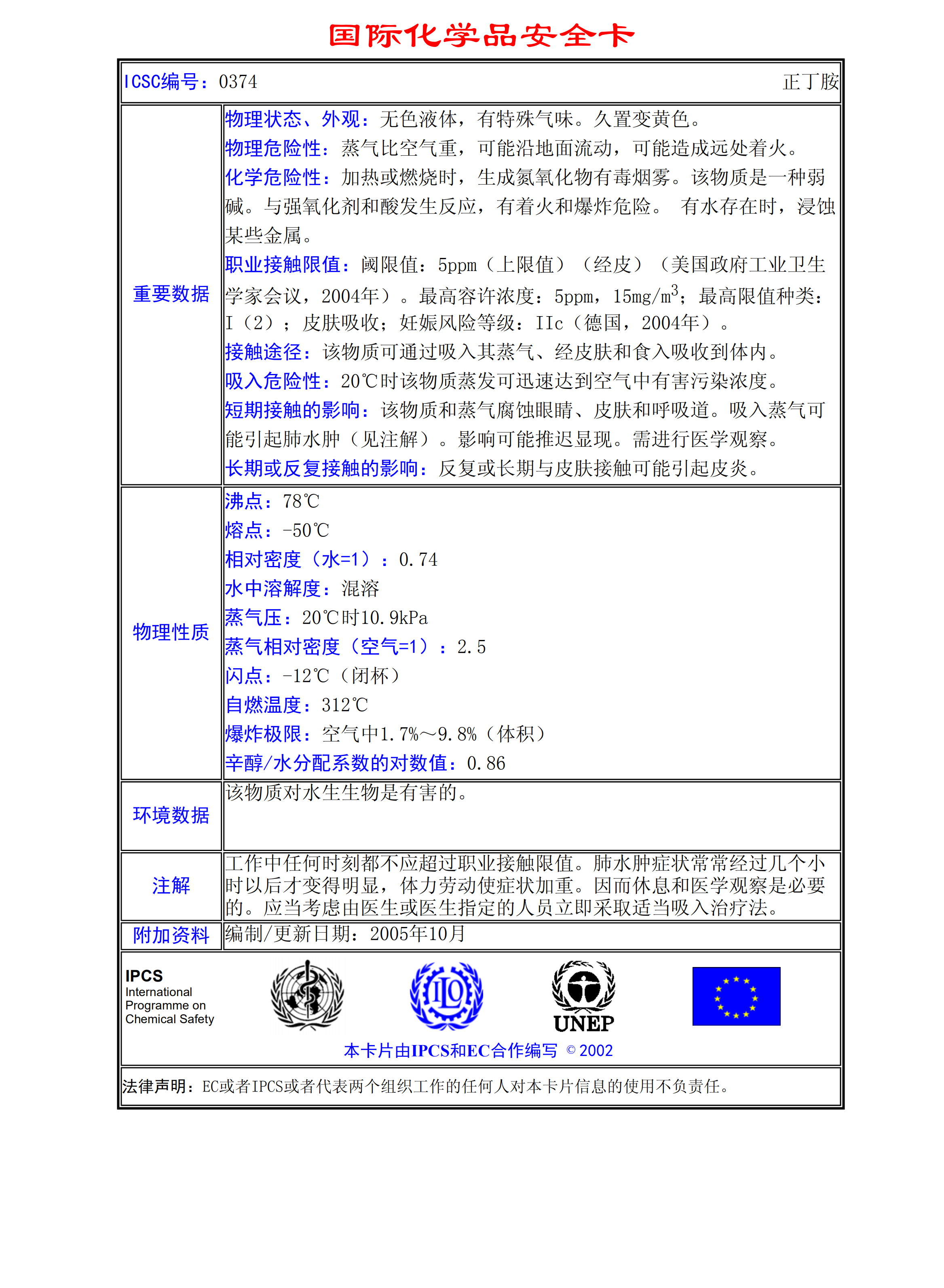 正丁胺MSDS
