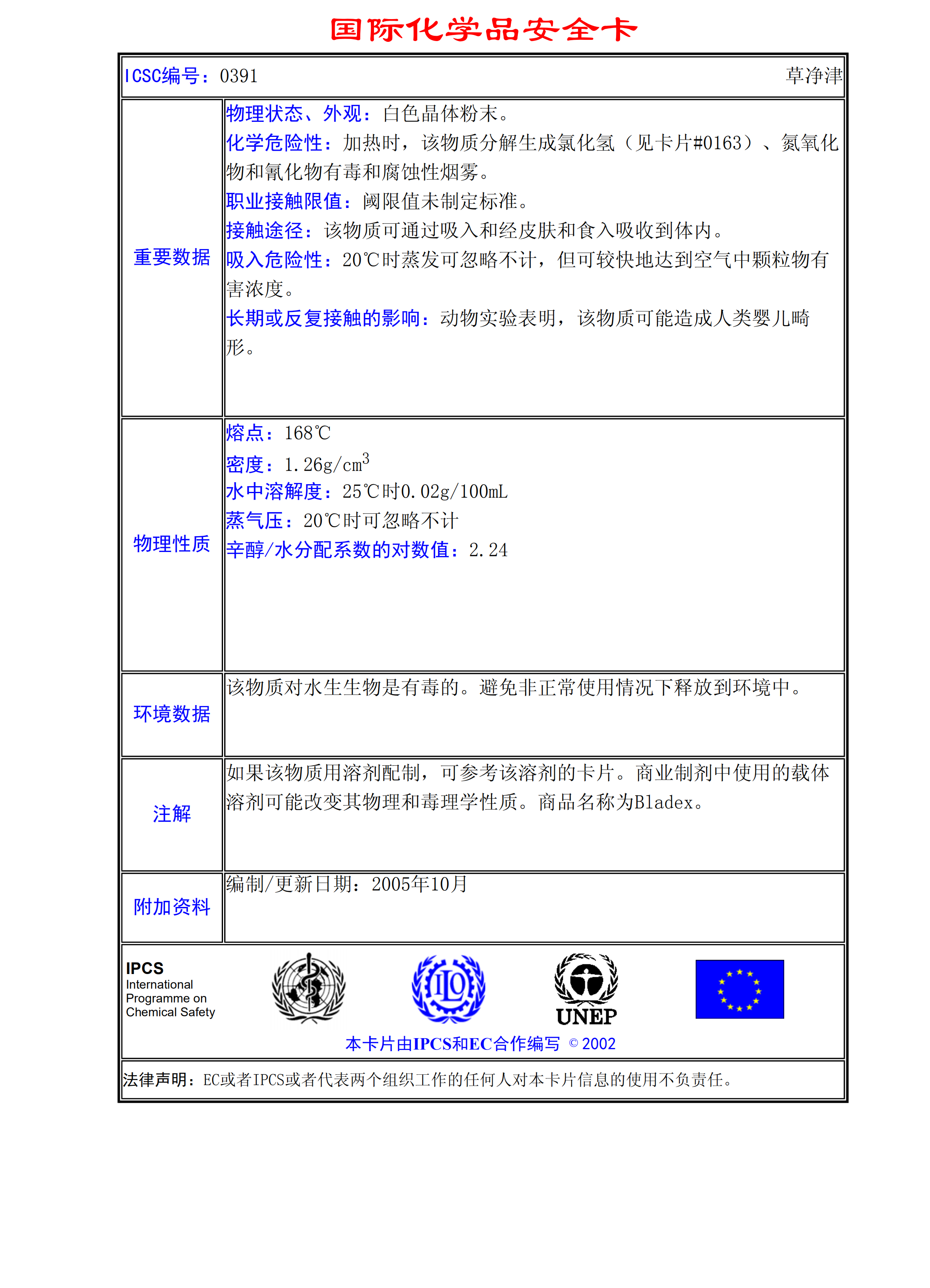 草凈津MSDS