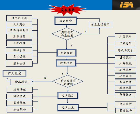 應急反應的流程一般按照下面執行,但是應急反應講究的快速反應,前提是確保安全的條件下進行處置。