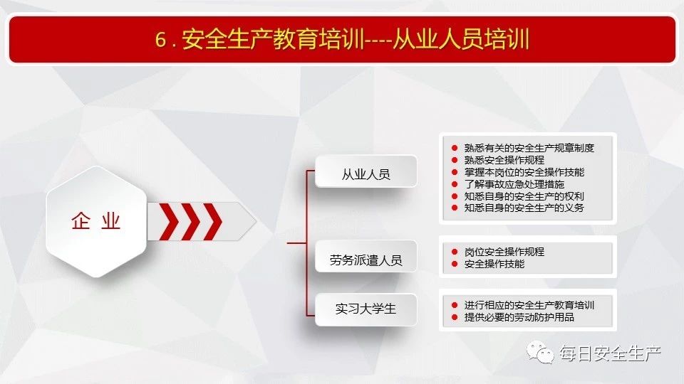 5 | 未按照規定對從業人員、被派遣勞動者、實習學生進行安全生產教育和培訓,或者未按照規定如實告知有關的安全生產事項的 |