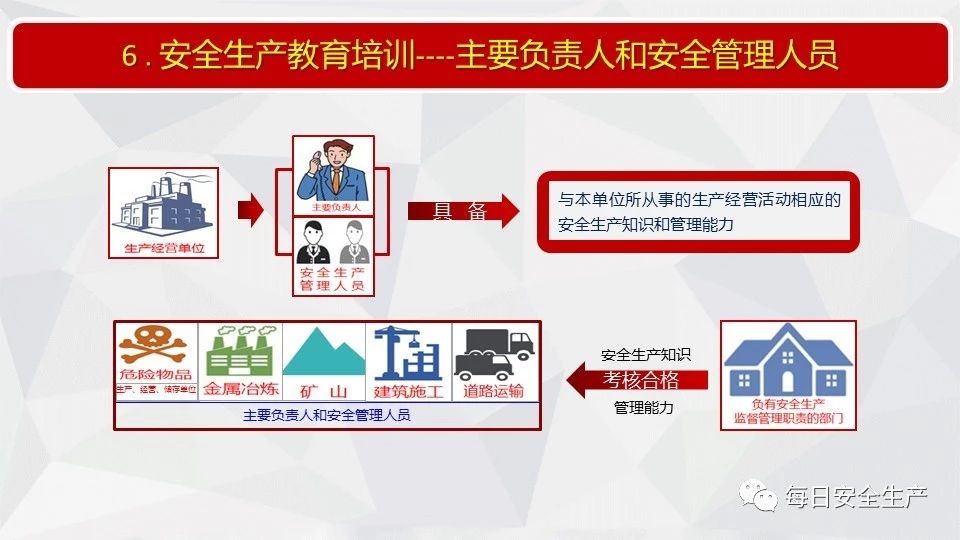 教育 培訓 | 危險物品的生產、經營、儲存單位以及礦山、金屬冶煉、建筑施工、道路運輸單位的主要負責人和安全生產管理人員未按照規定經考核合格的 | 責令限期改正,可以處五萬元以下的罰款 | 責令停產停業整頓,并處五萬元以上十萬元以下的罰款,對其直接負責的主管人員和其他直接責任人員處一萬元以上二萬元以下的罰款 |