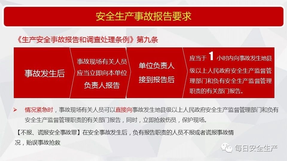 事故 管理 | 主要負責人在本單位發生生產安全事故時,不立即組織搶救或者在事故調查處理期間擅離職守或者逃匿的 | 給予降級、撤職的處分,并由安全生產監督管理部門處上一年年收入百分之六十至百分之一百的罰款;對逃匿的處十五日以下拘留;構成犯罪的,依照刑法有關規定追究刑事責任。 生產經營單位主要負責人對生產安全事故隱瞞不報、謊報或者遲報的,依照前款規定處罰 | |