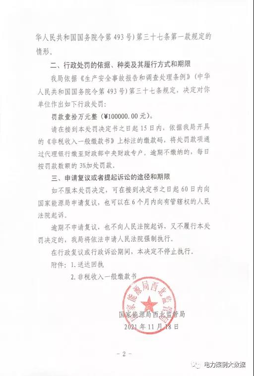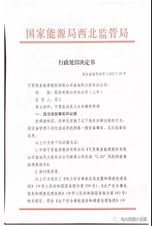 近日,國家能源局西北監管局發布【2021】28號行政處罰決定書,