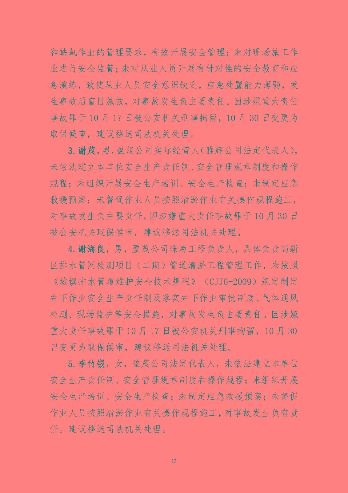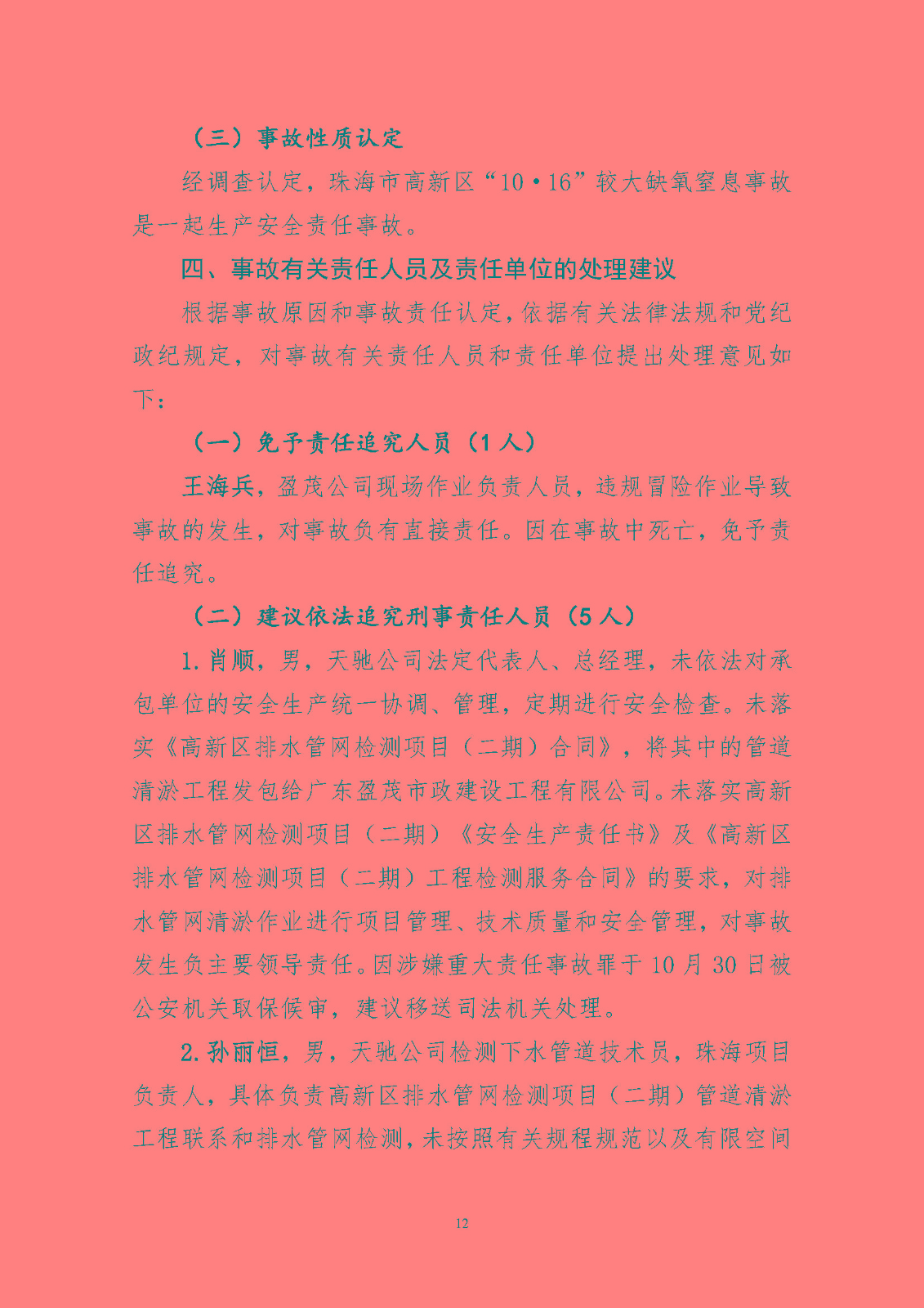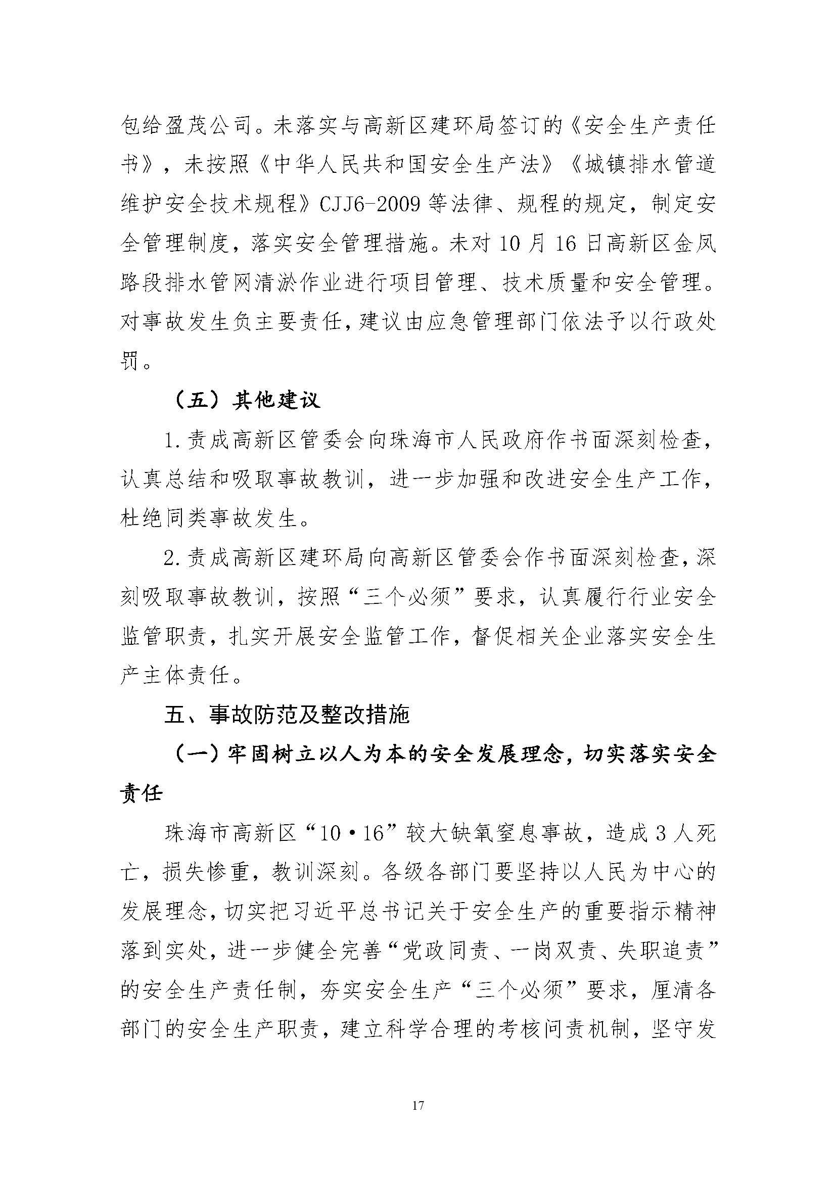 珠海市高新區“10·16”較大缺氧窒息事故調查報告