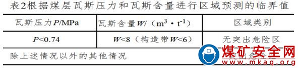 (1)區(qū)域突出危險性預(yù)測采用直接測定法測定煤層瓦斯含量 W 和煤層瓦斯壓力 P,由鉆機(jī)隊(duì)施工 4 個預(yù)測孔,防突工負(fù)責(zé)現(xiàn)場監(jiān)督、采集數(shù)據(jù),出具突出危險性預(yù)測報告單,經(jīng)防突隊(duì)、科、礦有關(guān)領(lǐng)導(dǎo)審核簽字確認(rèn)后執(zhí)行區(qū)域防突措施。