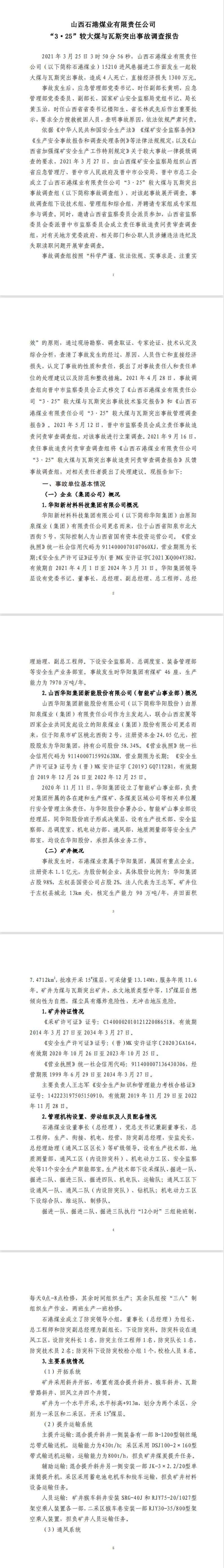山西石港煤業(yè)“3·25”事故調(diào)查報告