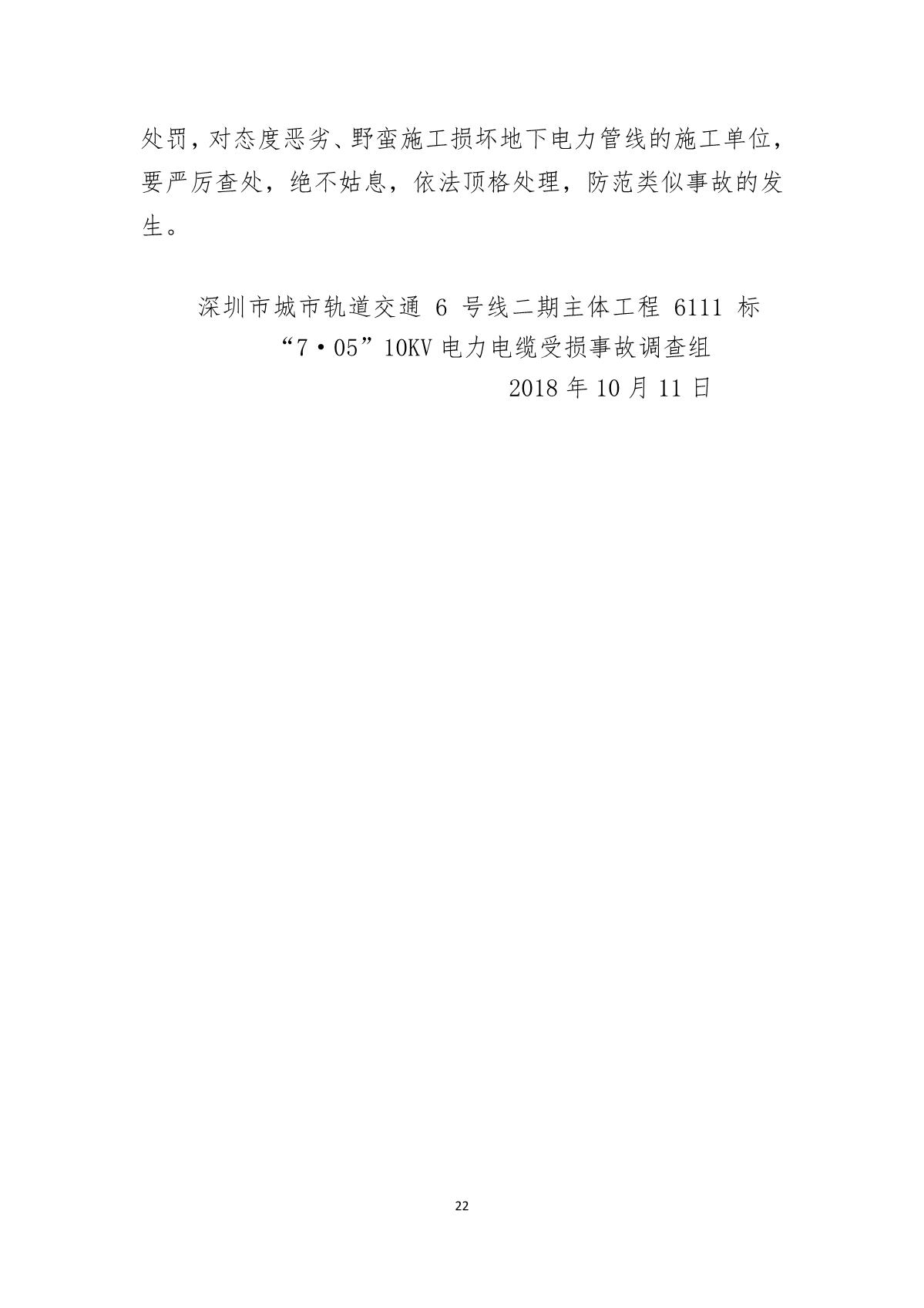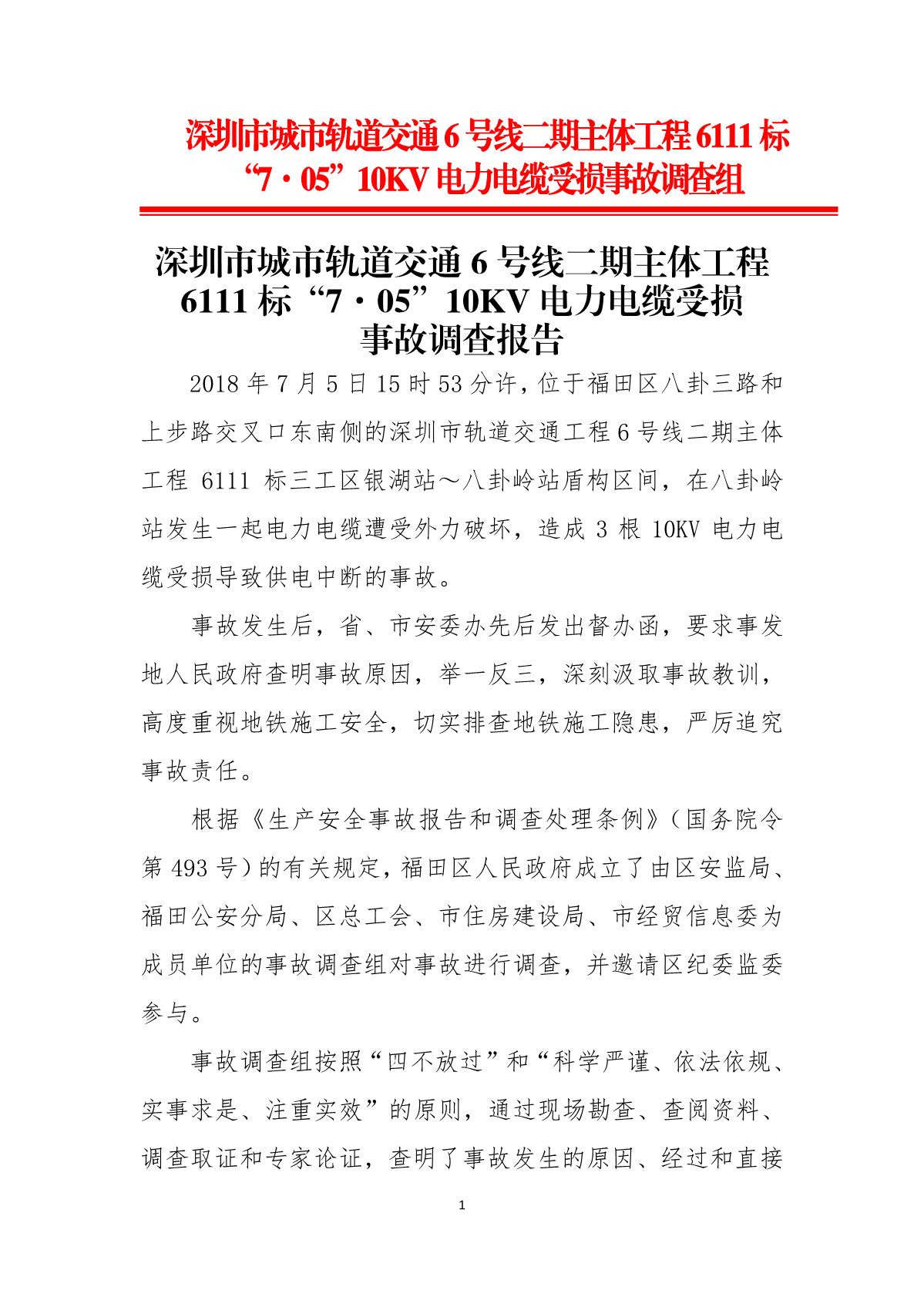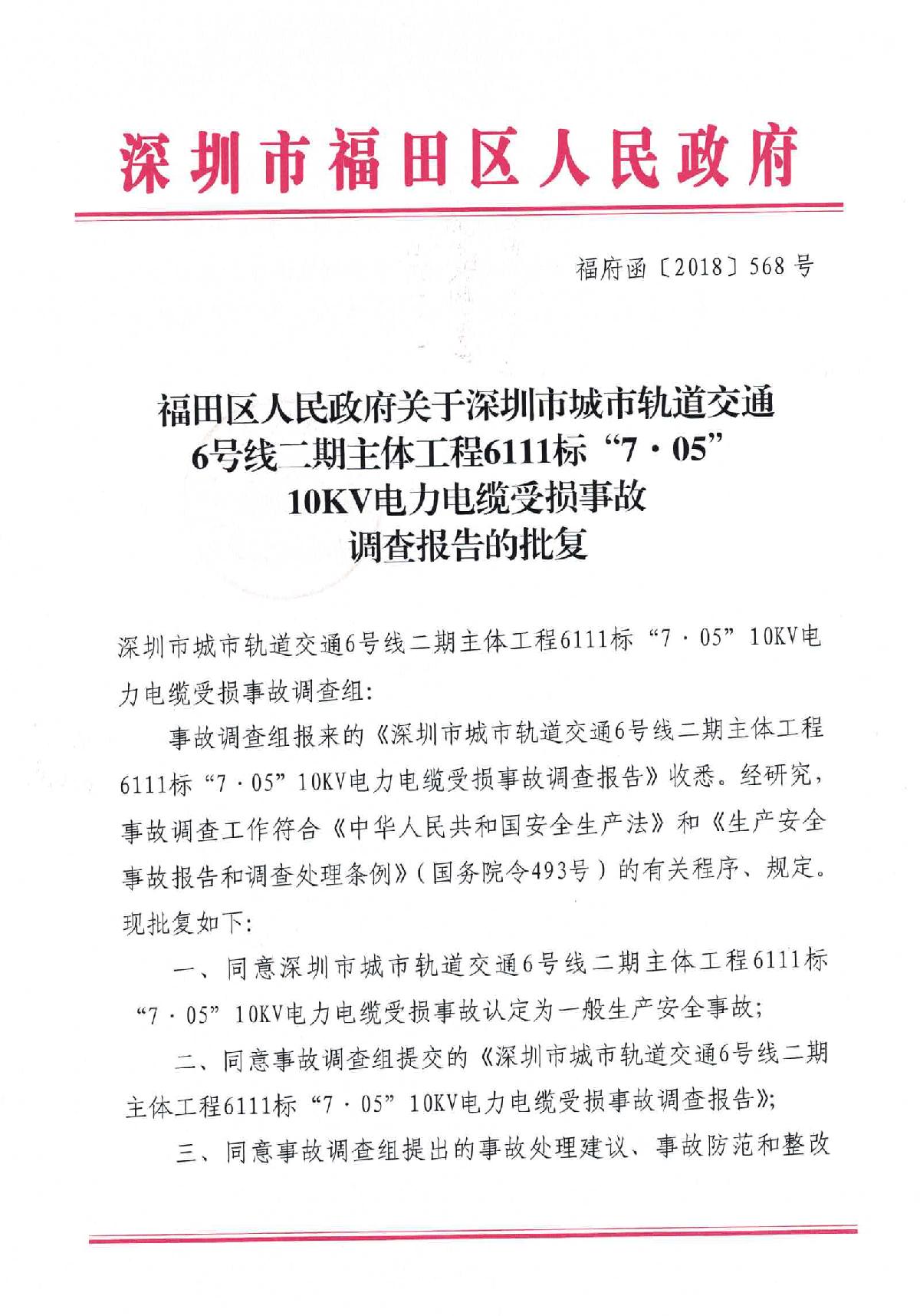 福田區(qū)人民政府關(guān)于深圳市城市軌道交通6號(hào)線(xiàn)二期主體工程6111標(biāo)“7.05”10kv電力電纜受損事故調(diào)查報(bào)告