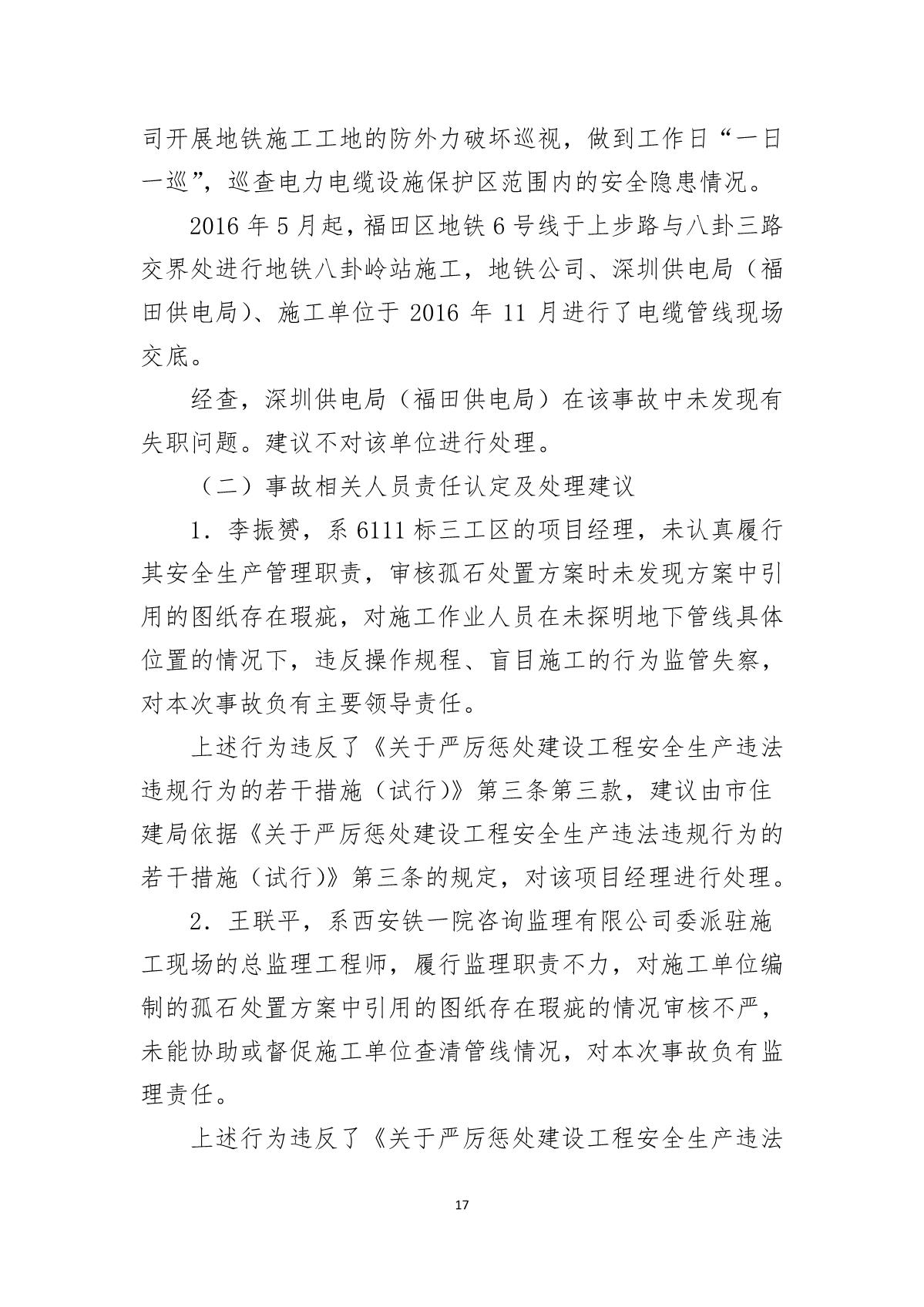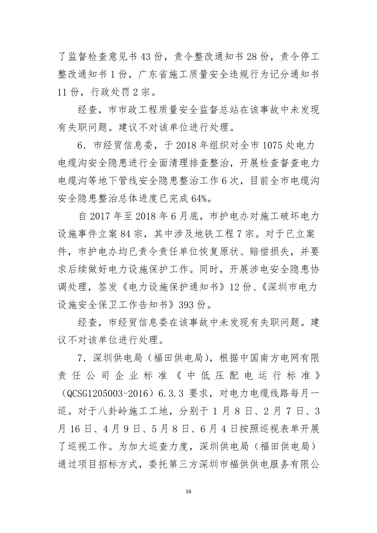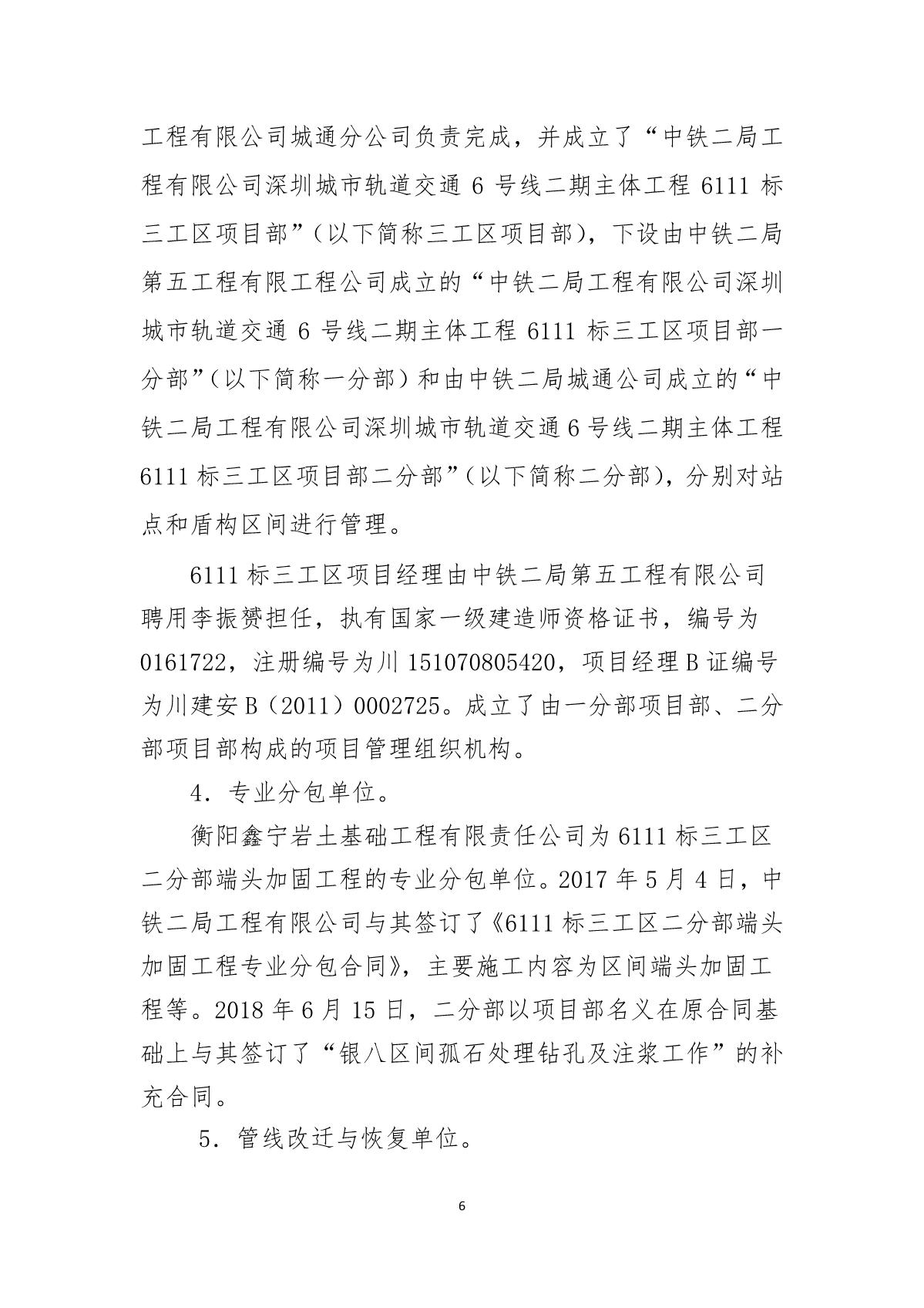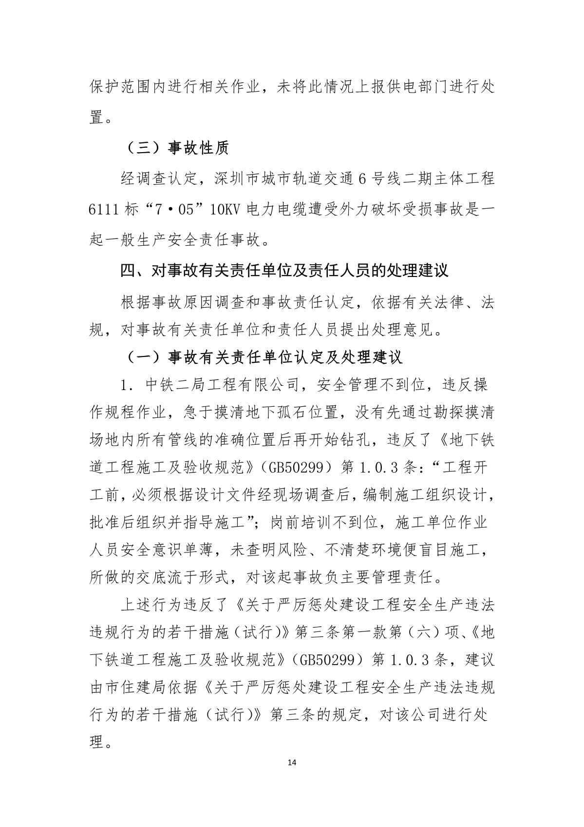 福田區(qū)人民政府關(guān)于深圳市城市軌道交通6號(hào)線(xiàn)二期主體工程6111標(biāo)“7.05”10kv電力電纜受損事故調(diào)查報(bào)告