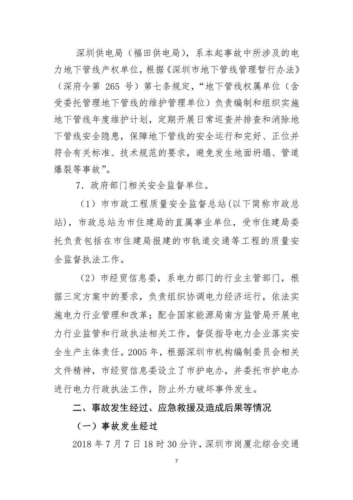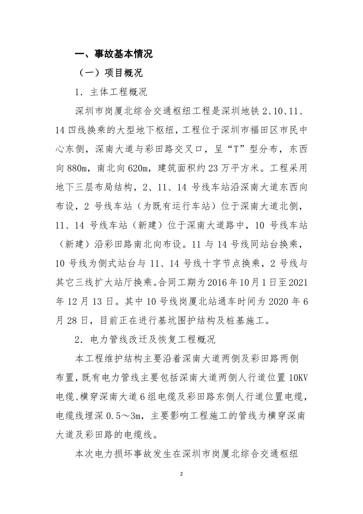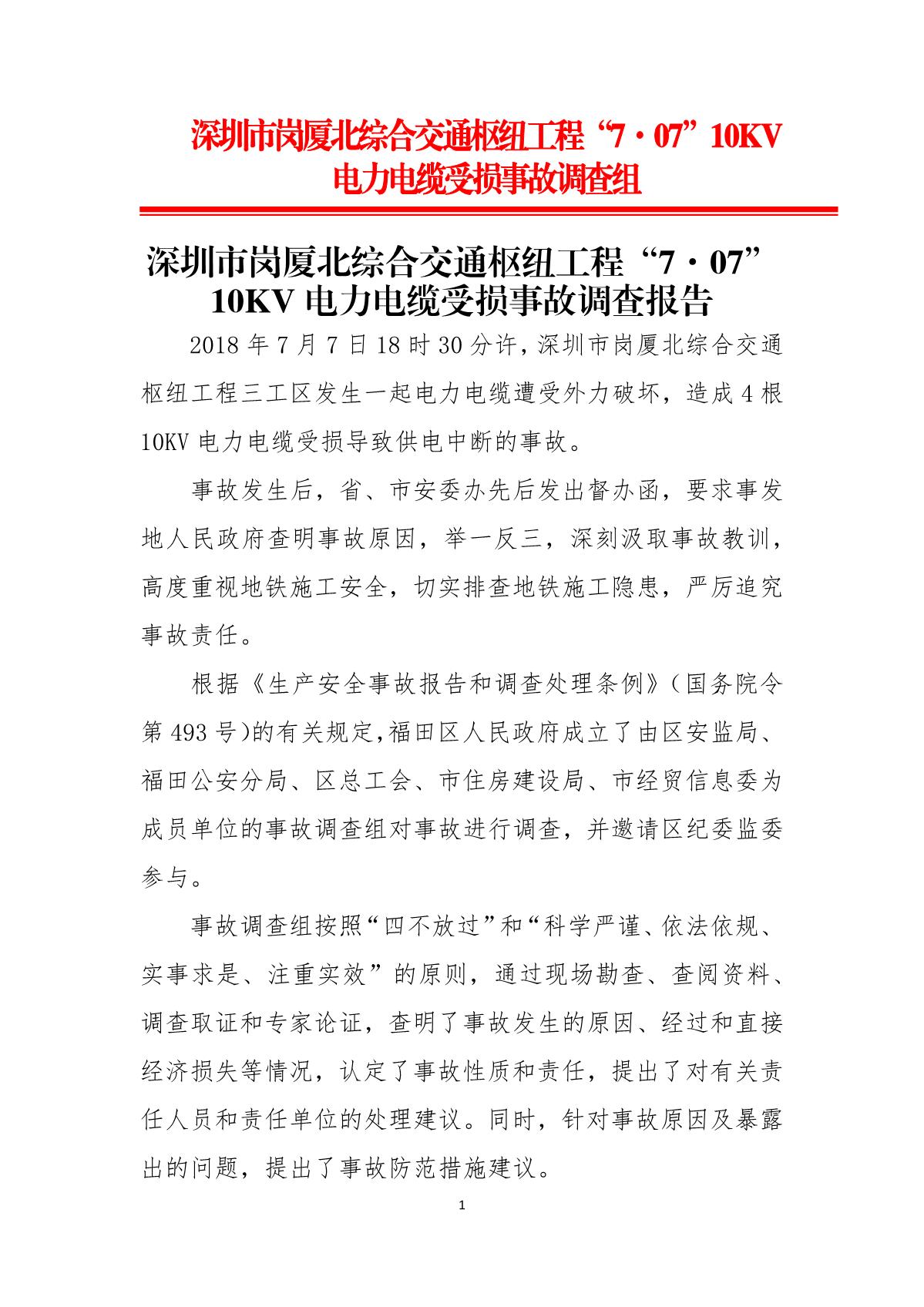 深圳市崗廈北綜合交通樞紐工程“7.07”10kv電力電纜受損事故調查報告