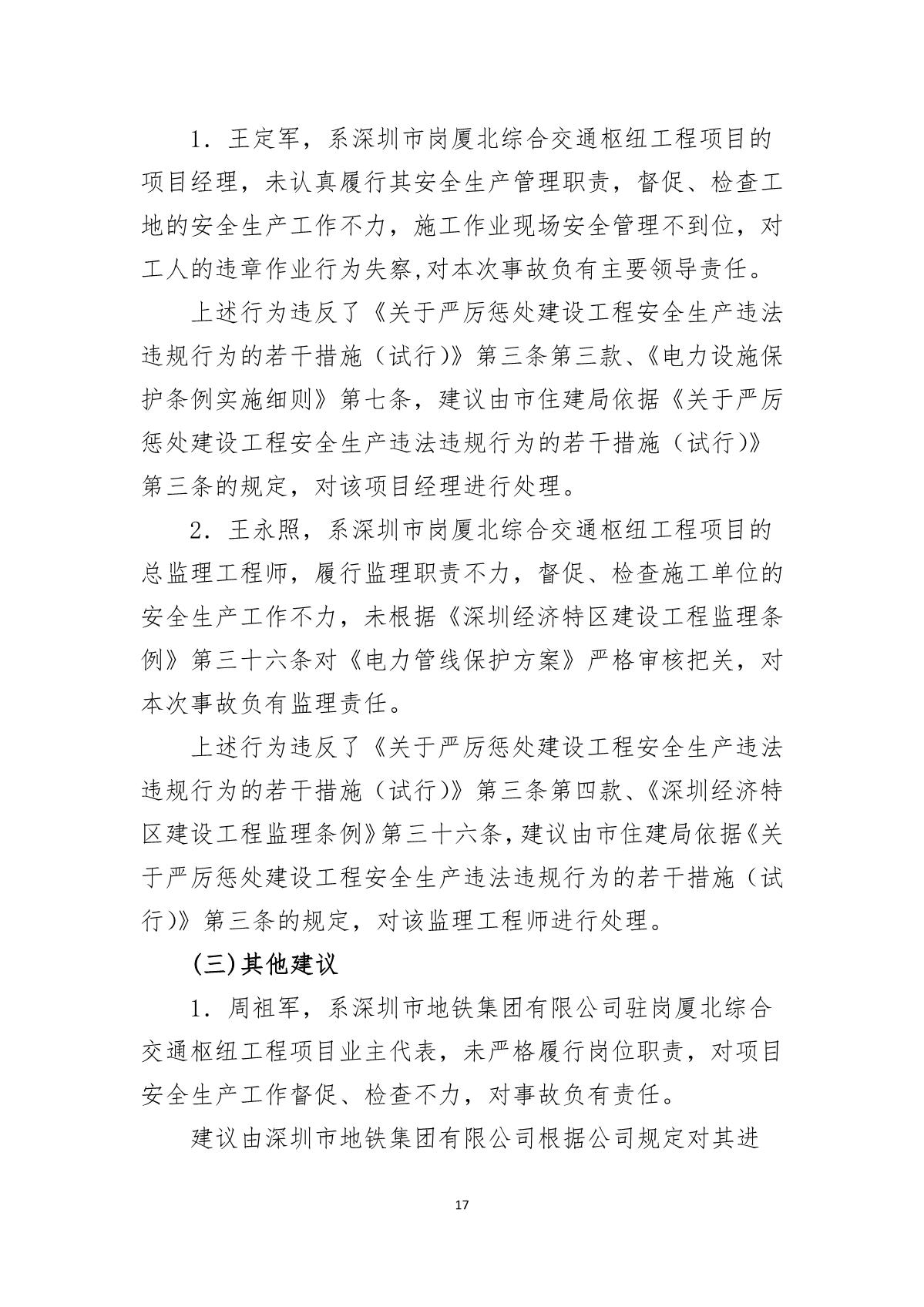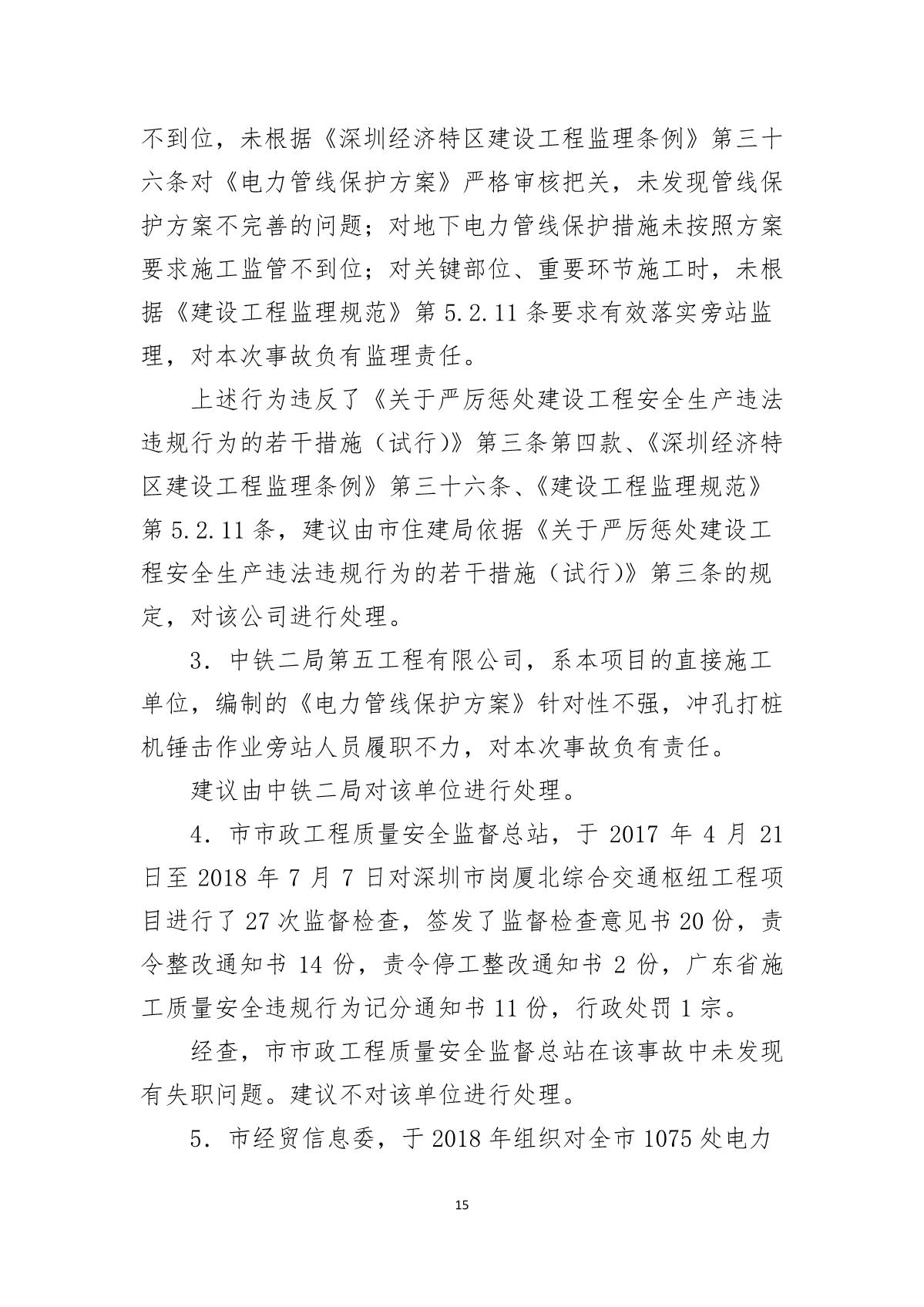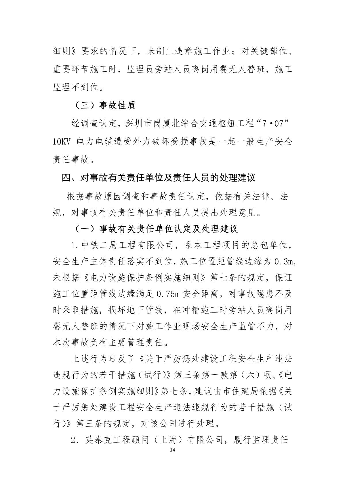 深圳市崗廈北綜合交通樞紐工程“7.07”10kv電力電纜受損事故調查報告