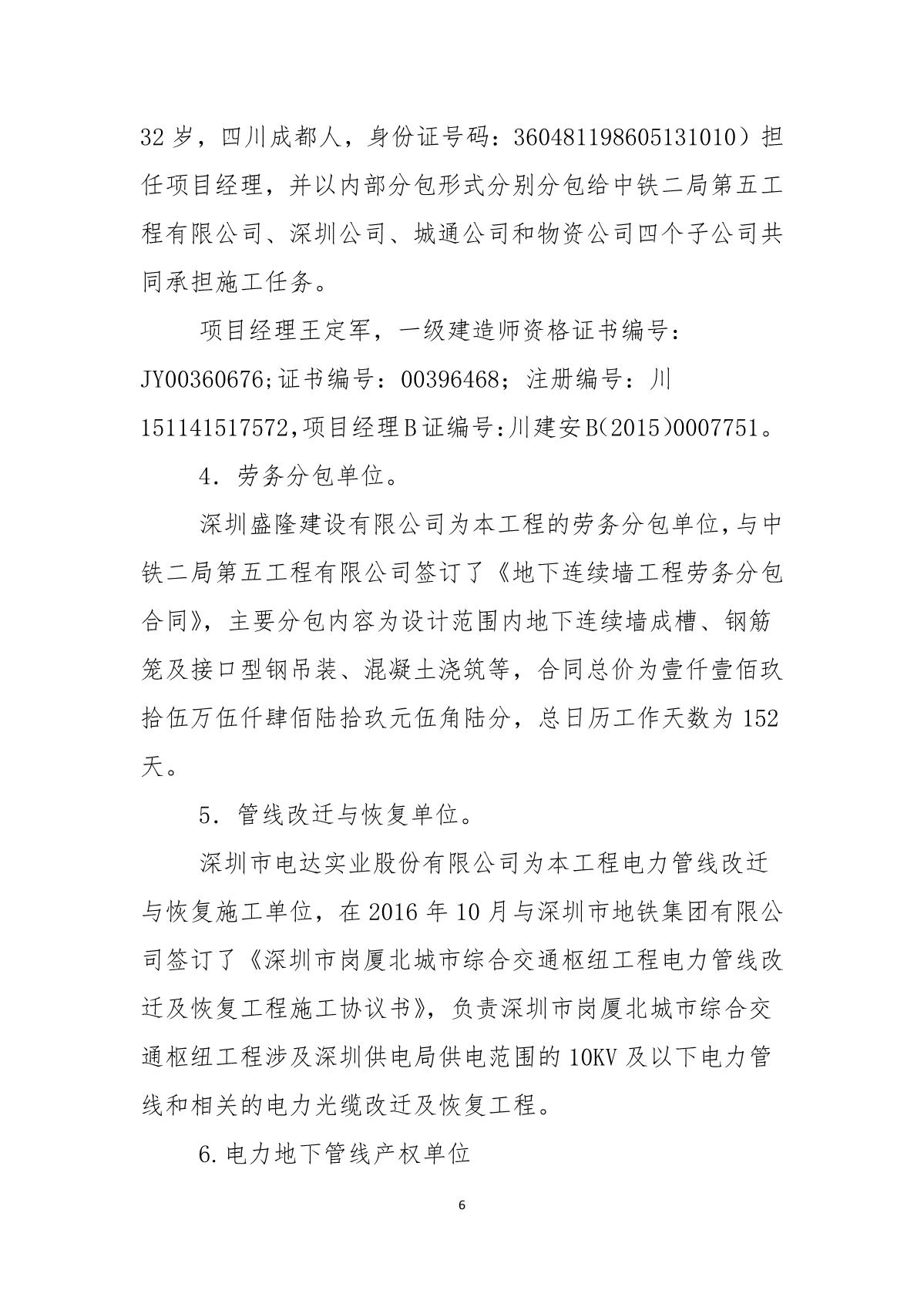 福田區人民政府關于深圳市城市軌道交通6號線二期主體工程6111標“7.05”10kv電力電纜受損事故調查報告