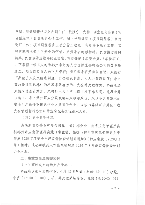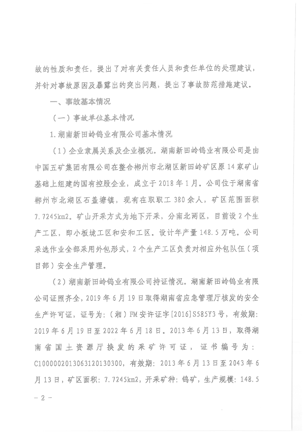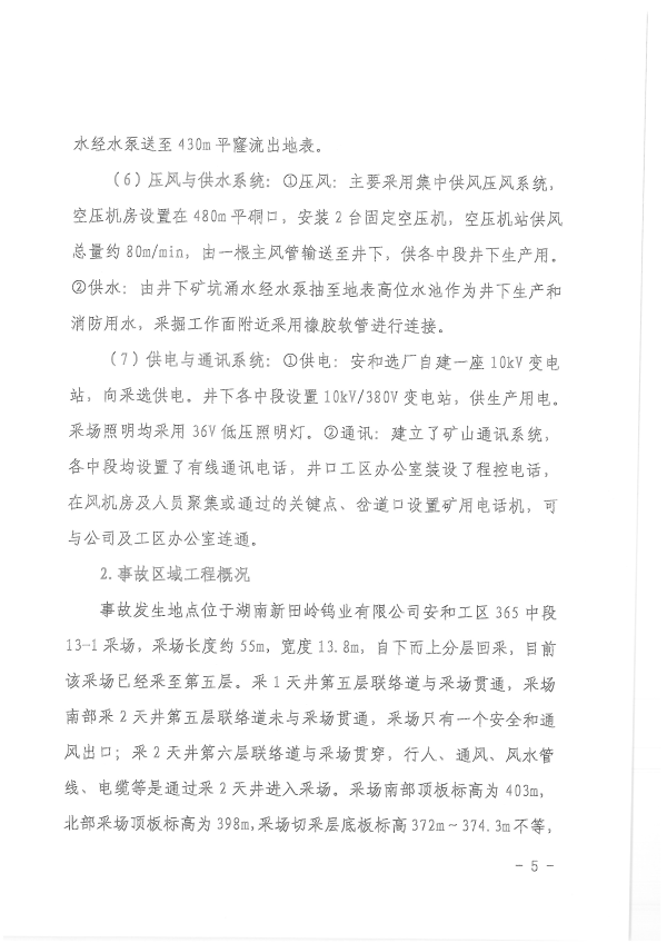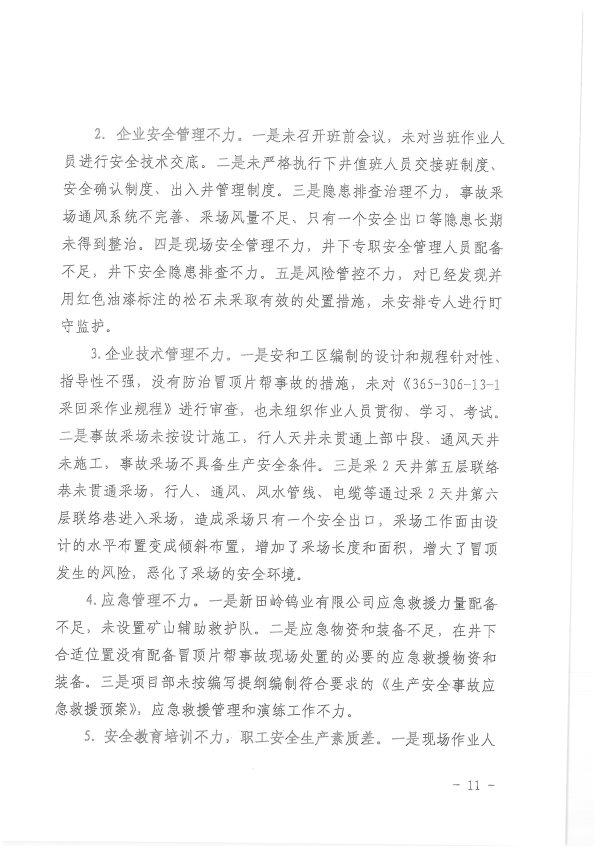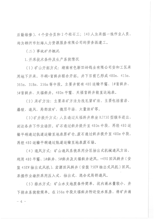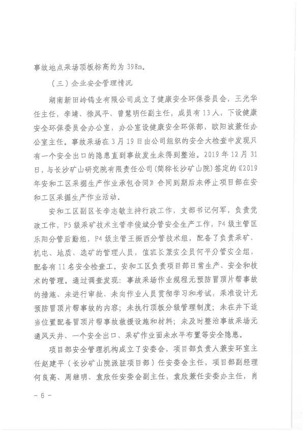 湖南新田嶺鎢業有限公司“4?19”冒頂片幫事故調查報告