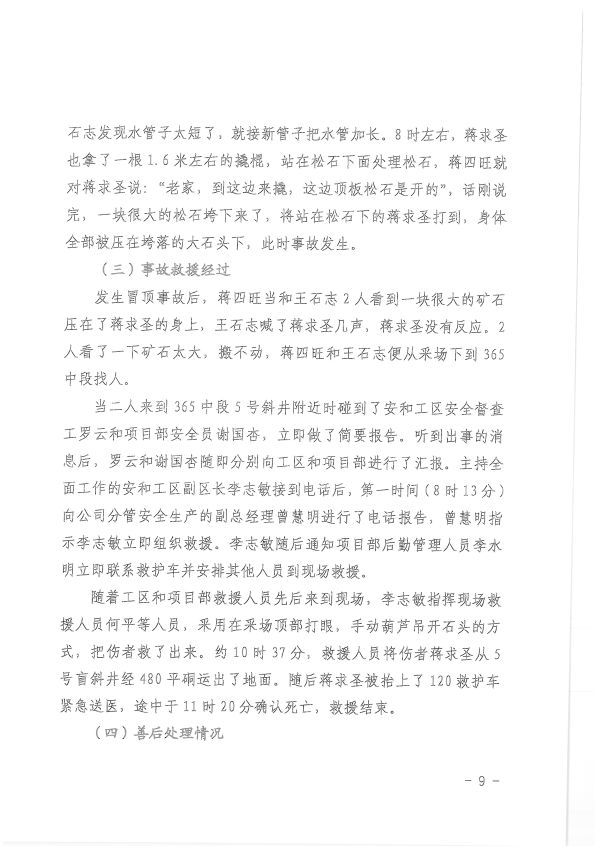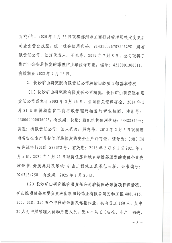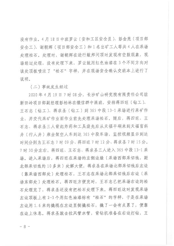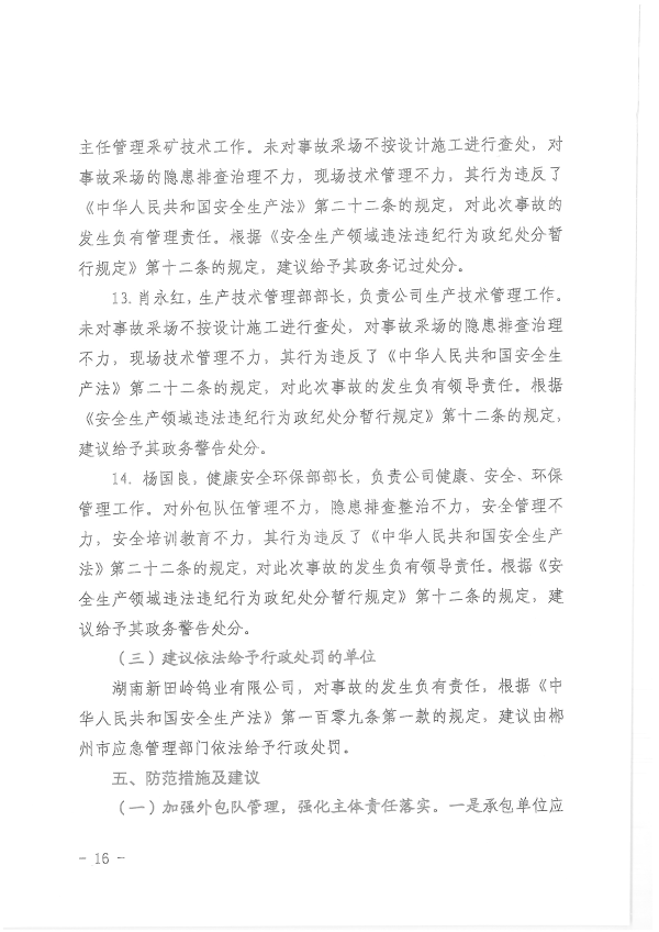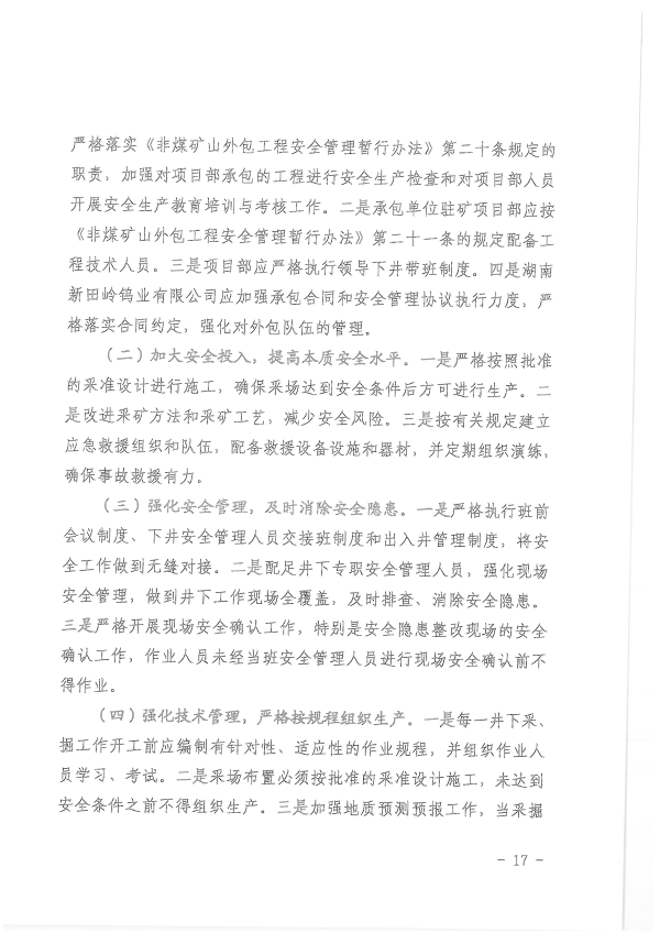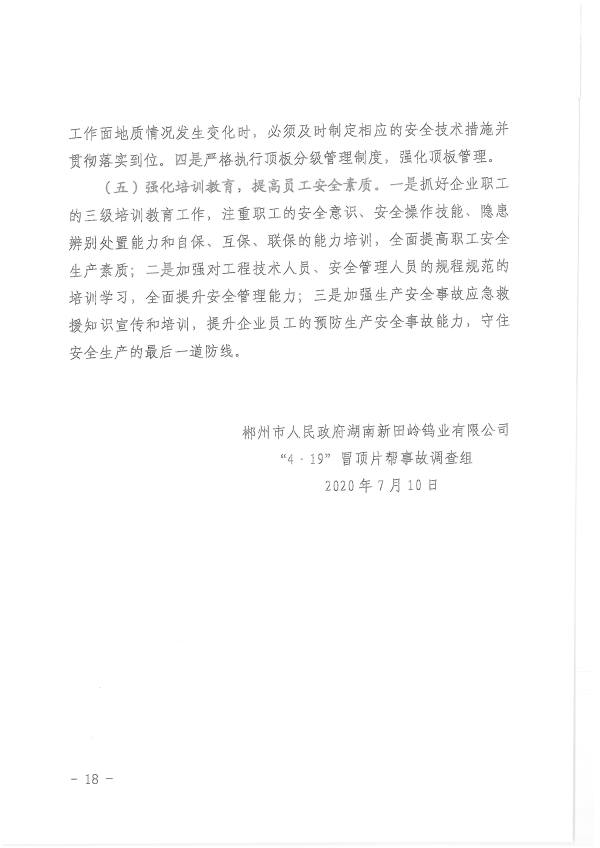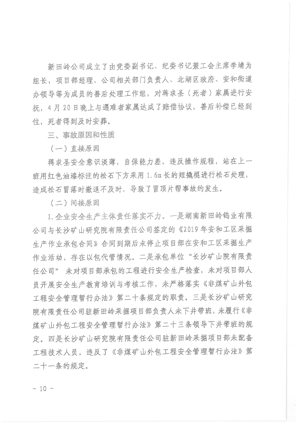 湖南新田嶺鎢業有限公司“4?19”冒頂片幫事故調查報告