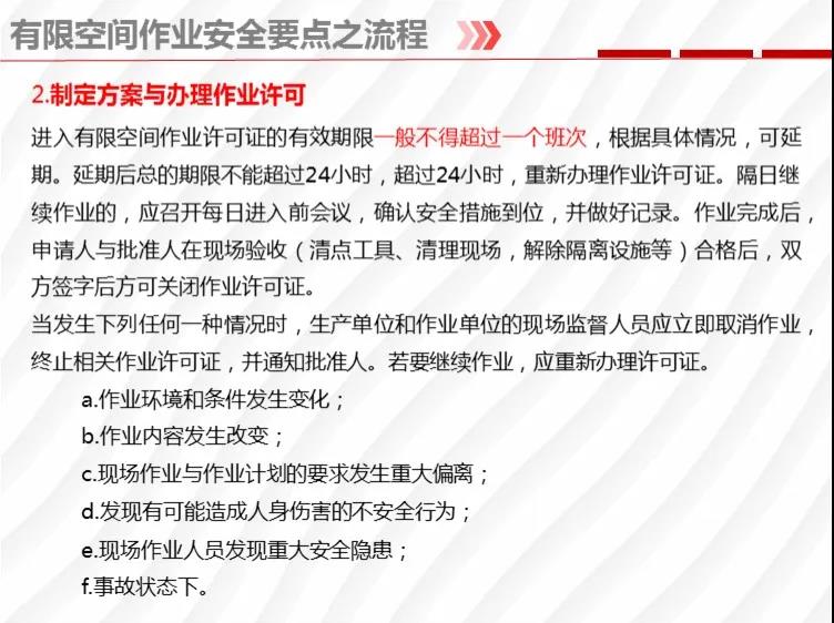 一要立即開展有限空間安全風險排查。春節(jié)假期剛過,各類企業(yè)集中復工復產(chǎn),涉及有限空間作業(yè)安全的檢維修、調試行為增多,加之氣溫逐漸升高,造成有限空間中有毒有害氣體集聚,安全風險加劇。各地各有關部門要督促涉及有限空間作業(yè)的工礦商貿(mào)企業(yè)以及市政工程、垃圾發(fā)電、燃氣、熱力、排水、衛(wèi)生、環(huán)保等重點單位、重點區(qū)域、重點場所開展全方位的風險隱患排查。對發(fā)現(xiàn)的風險隱患,企業(yè)要逐一登記造冊,向負有安全監(jiān)管職責的部門報告,并按照《有限空間作業(yè)安全指導手冊》(應急廳函〔2020〕299號)要求落實各項防范措施。
