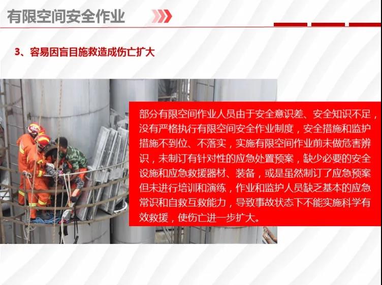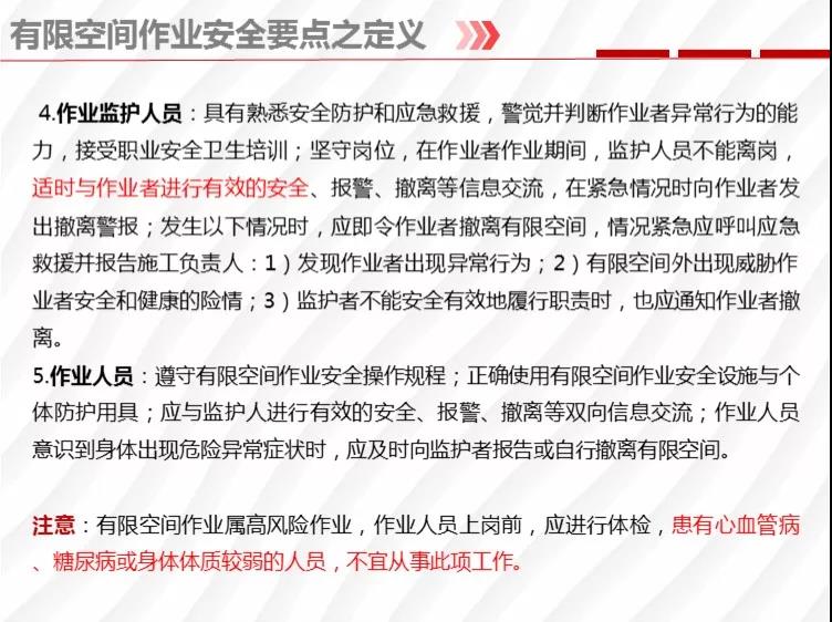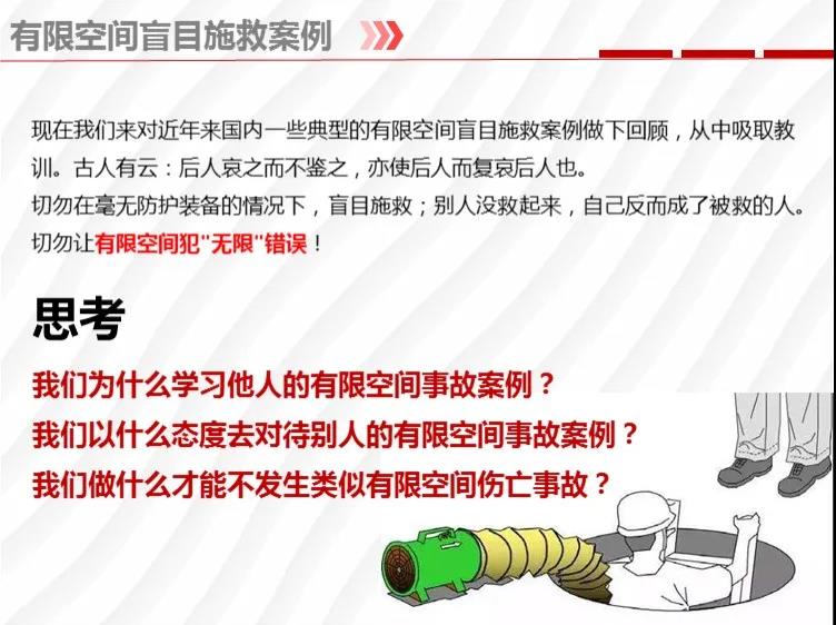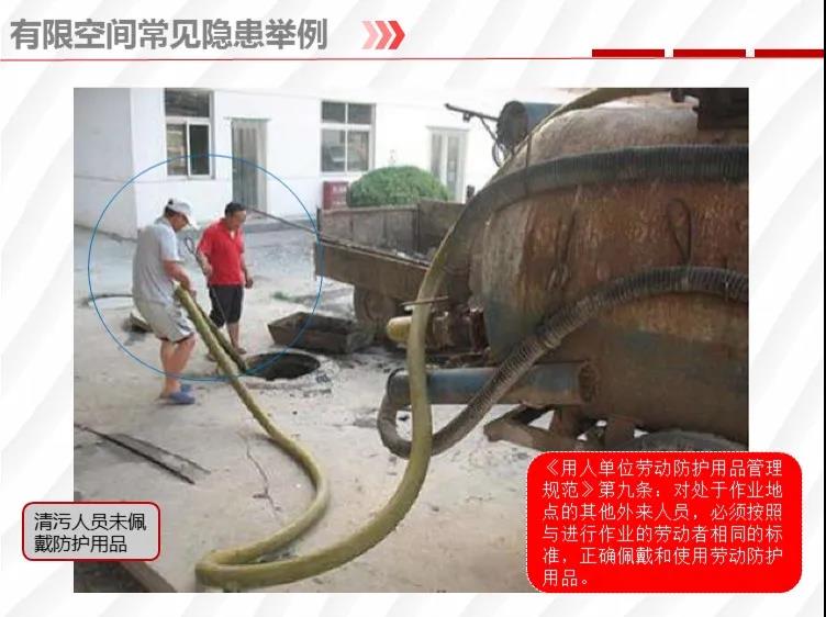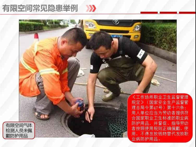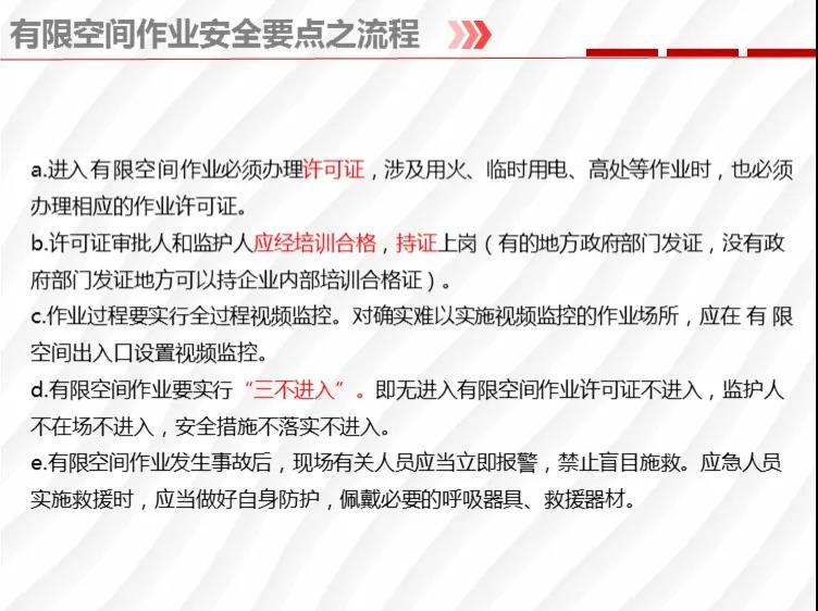 二要嚴格落實有限空間作業(yè)安全管理規(guī)定。各地各有關部門要督促企業(yè)嚴格執(zhí)行《安徽省有限空間作業(yè)安全管理與監(jiān)督暫行規(guī)定》,凡涉及到有限空間作業(yè),做到“五個必須”,即必須嚴格實行作業(yè)審批制度;必須做到“先通風、再檢測、后作業(yè)”;必須配備個人防中毒窒息等防護裝備,設置安全警示標識;必須對作業(yè)人員進行安全培訓;必須制定應急措施,現(xiàn)場配備應急裝備,嚴禁盲目施救。