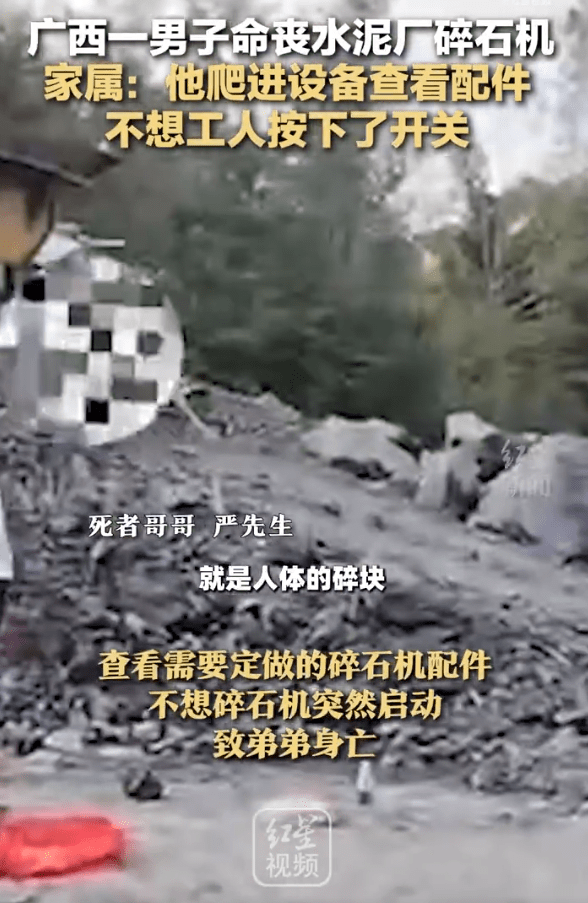 6月12日,廣西北流的嚴先生爆料稱,5月25日,他的弟弟受邀前往一家水泥廠查看需要定做的碎石機配件,不想碎石機突然啟動,致弟弟身亡。