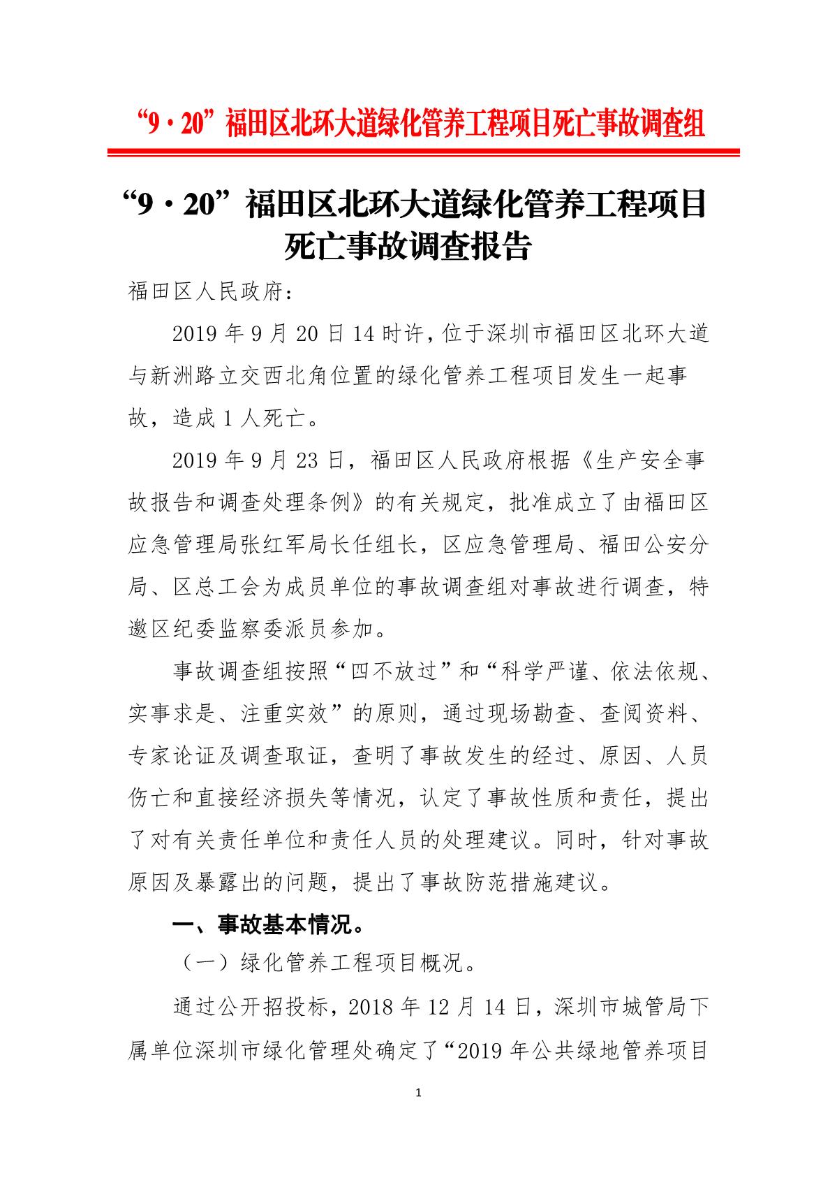 “9.20”福田區北環大道綠化管養工程項目死亡事故調查報告