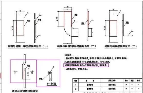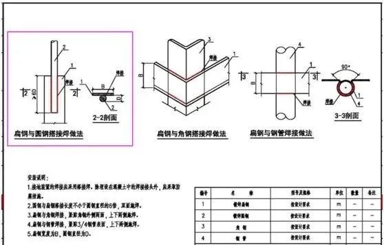 接地裝置的焊接應采用搭接焊接,除埋設在混凝土中的焊接接頭外,應采取防腐措施,圓鋼與扁鋼(圓鋼)焊接長度不小于圓鋼直徑的6倍,雙面施焊。
