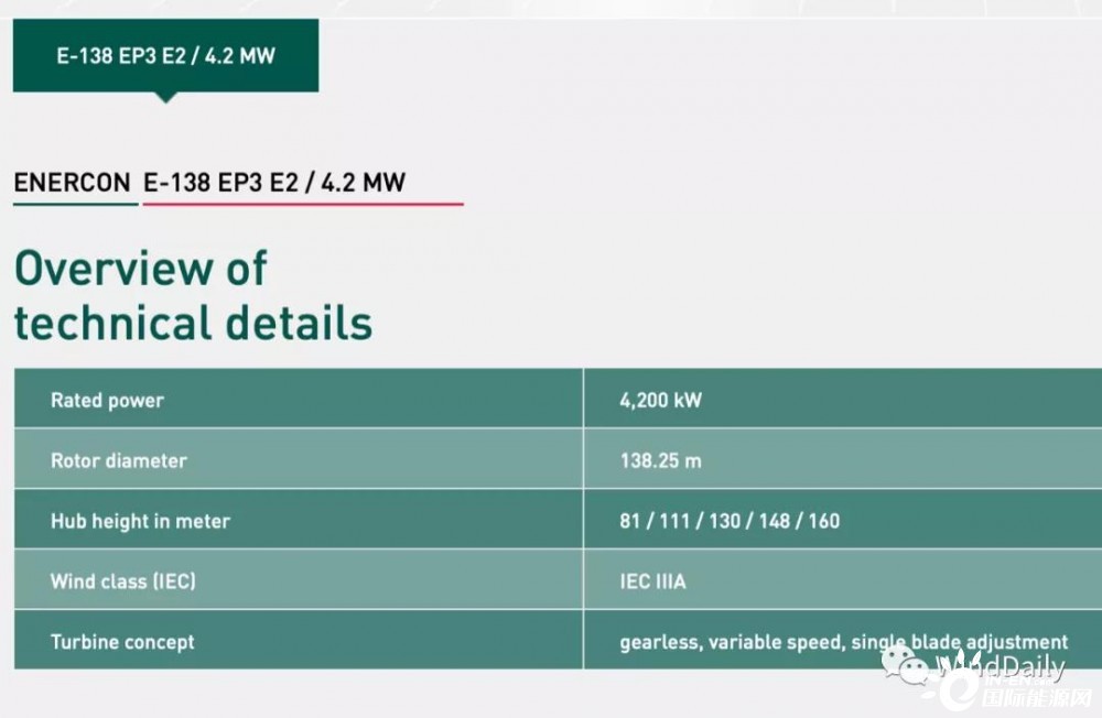 Enercon E-138 EP3風電機組技術參數: